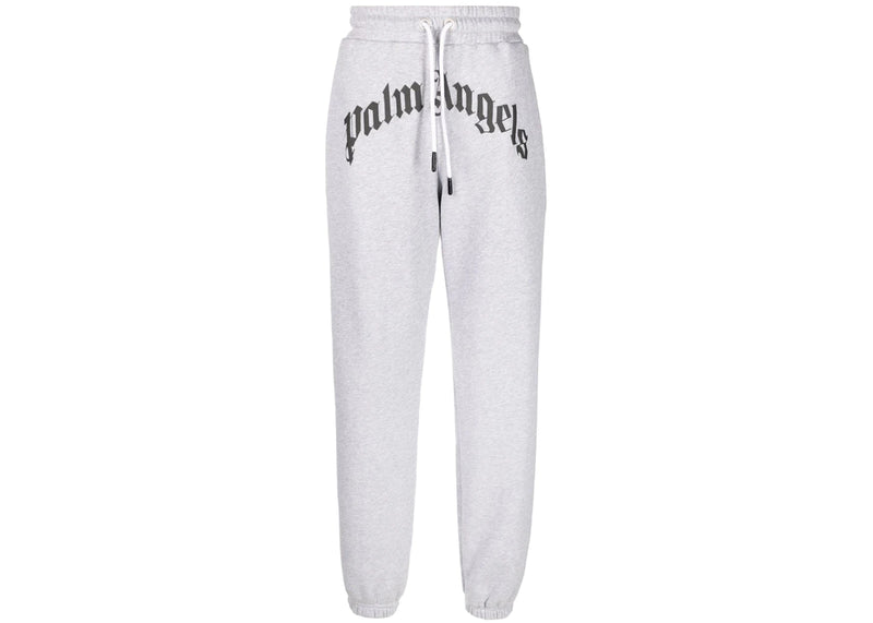 The Palm Angels Curved Logo Sweatpants Grey/Black is now available at Side Kicks!