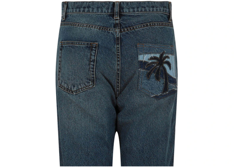 The Palm Angels Intarsia Regular Fit Jeans Blue is now available at Side Kicks!