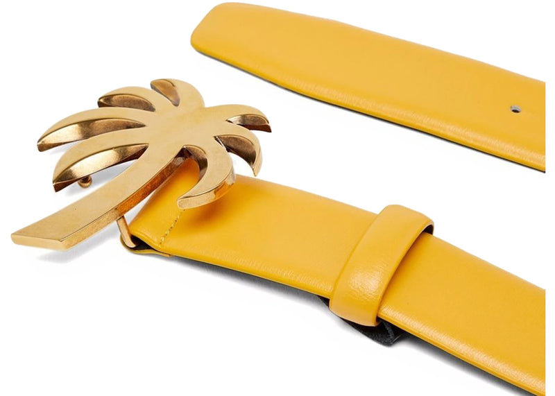 Palm Angels Palm Tree Buckle Leather Belt Yellow/Gold-tone