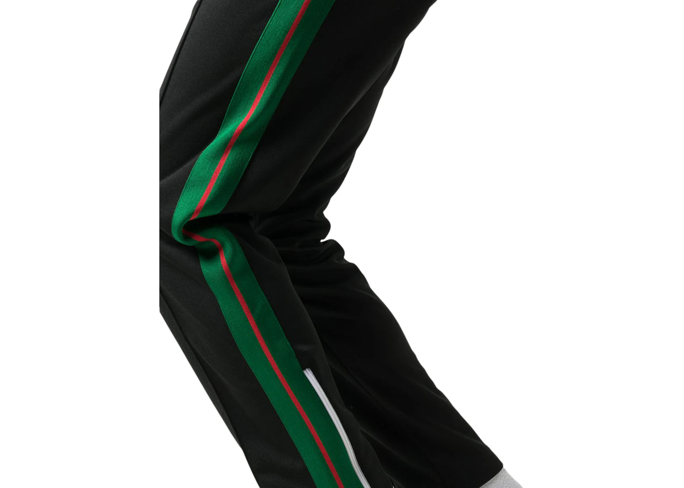The Palm Angels Side Stripe Track Slim Fit Pants Black/Red/Green is now available at Side Kicks!