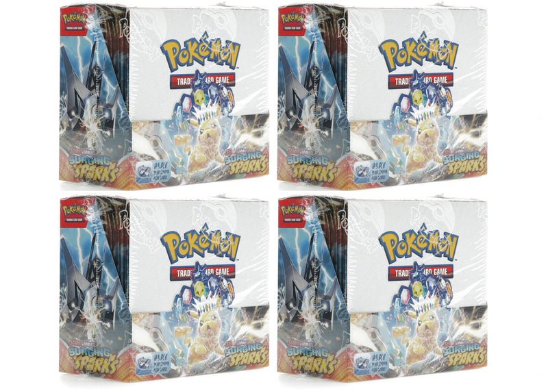Each Booster Box contains 36 booster packs, each with 10 cards and one basic Energy, giving collectors a chance to explore the new cards in this set to build their collection. Being a 4x Lot, this provides 4 booster boxes which gives players and collectors the best chance at pulling the card they are looking for. Released on November 8th, 2024, the Pokémon Scarlet & Violet Surging Sparks Booster Box retailed for $161. This set is a great set for both new and long-time collectors looking to expand their collection!
