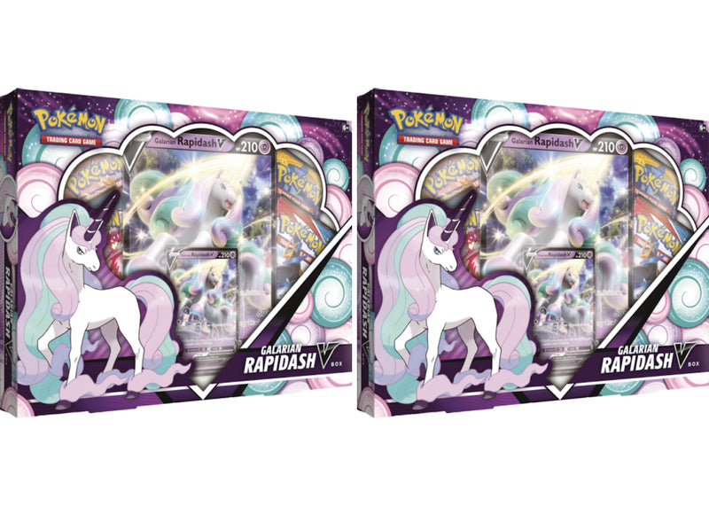 Each order of this Pokémon card product comes with two (2) Pokémon TCG Galarian Rapidash Boxes. For more information on this Pokémon card V Box, you can click here.