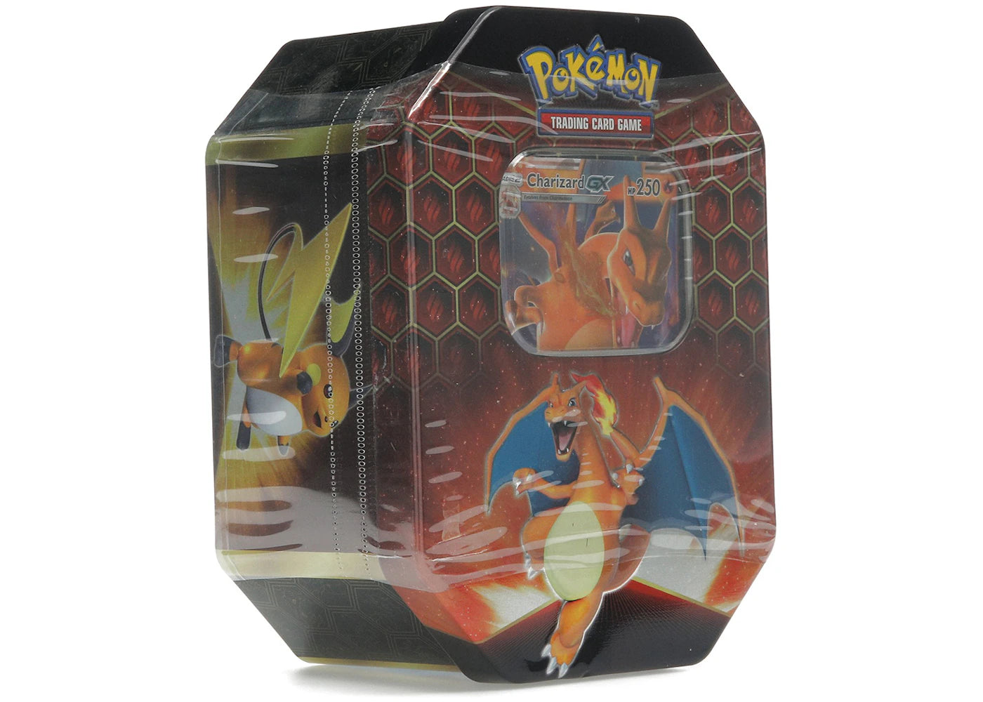 The 2019 Pokémon Hidden Fates Charizard Tin released on September 6, 2019. Each tin comes with one Charizard-GX promo Pokémon card, four Hidden Fates booster packs, and one code card for the Pokémon card online game.