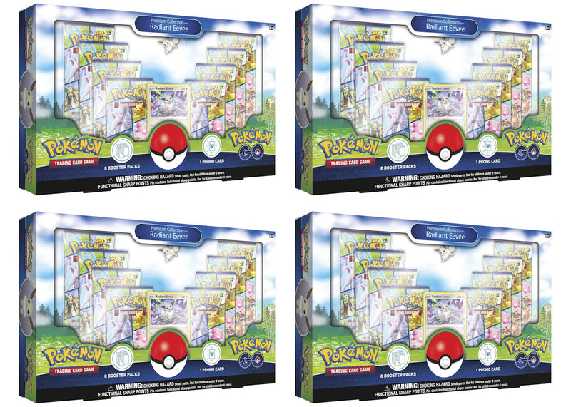 The Pokemon TCG Pokemon Go Radiant Eevee Premium Collection Box 4X Lot was released by the company in July 2022 and it originally retailed at $45.