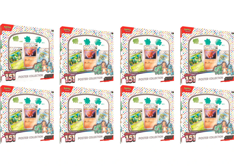 The Pokémon TCG Scarlet & Violet 151 Poster Collection 8x Lot celebrates the 151 Pokémon from the Kanto region—a nod to the OG anime characters.