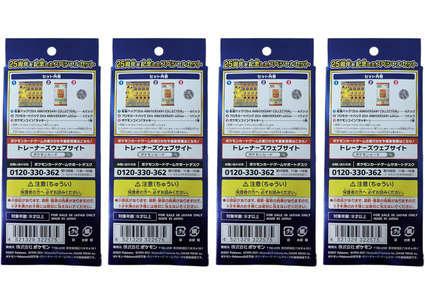 With each order of this Japanese Pokémon product, you will receive four (4) Pokémon 25th Anniversary Collection Special Set. To see a full product description for the Pokémon 25th Anniversary...