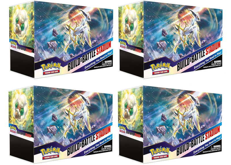 The Pokemon TCG Sword Shield Brilliant Stars Build Battle Stadium 4x Lot, based on the Sword & Shield series, is a four-box set with a collection of two-player items.