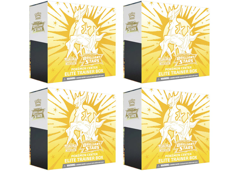 The Pokémon Brilliant Stars Pokémon Center Elite Trainer Box was released in February 2022 exclusively through the Pokémon Center website for a retail price of $50. Your order will include four (4) Pokémon Brilliant Stars Pokémon Center Elite Trainer Boxes.