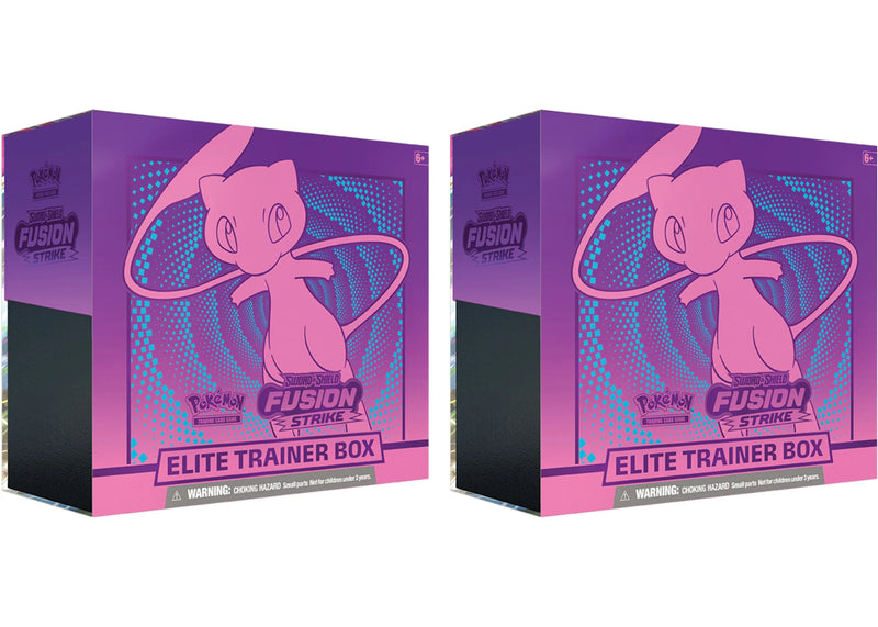 With each order of this Pokémon card product you will receive two (2) Pokémon Fusion Strike Elite Trainer Boxes. To see more information regarding the Pokémon Fusion Strike Elite Trainer Box click here.