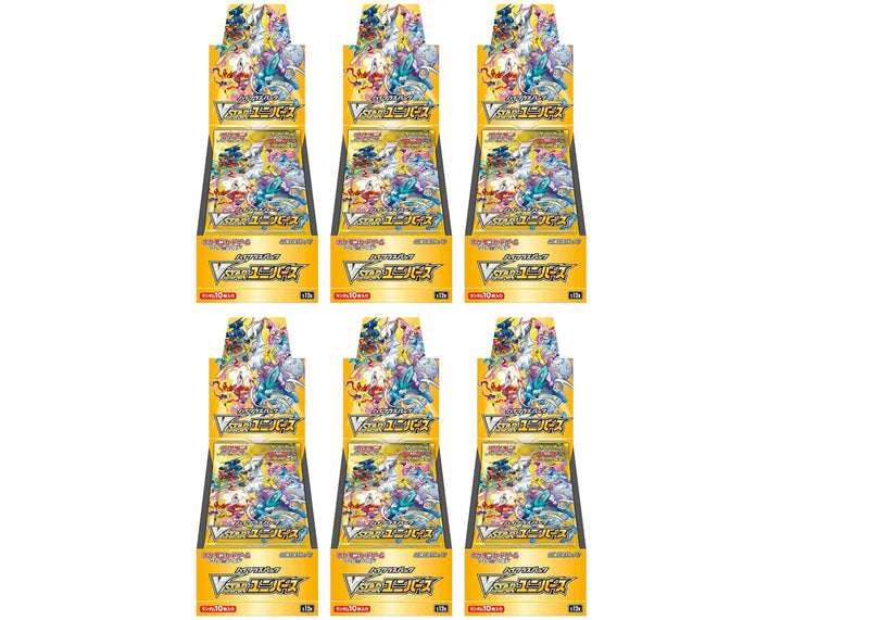 The Pokémon TCG Sword & Shield High Class Pack VSTAR Universe Box (Japanese) 6x Lot features 6 boxes and each box offers collectors a supply of 10 booster packs, and within each pack, you'll find 10 cards.