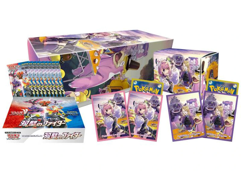 The 2021 Pokémon TCG Sword & Shield Matchless Fighters S5a Klara & Avery set is a special product released on March 19, 2021 in Japan - the same day that the Matchless Fighters release took place. Within the box Japanese Pokémon card collectors will find 2 Matchless Fighters S5a booster boxes, 2 sets of deck sleeves (one featuring Klara and one featuring Avery), a deck box featuring Klara & Avery, and a card storage box.