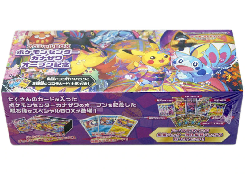 The 2020 Pokémon TCG Sword & Shield Special Box Pokémon Center Kanazawa Open Memorial celebrates the opening of the Kanazawa Pokémon Center and features exclusive artwork.