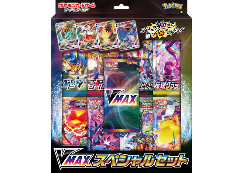 The Pokémon TCG Sword & Shield VMAX Special Set contains all Japanese language Pokémon cards. Inside you will find one promo pack that holds one VMAX Pokémon and three basic...