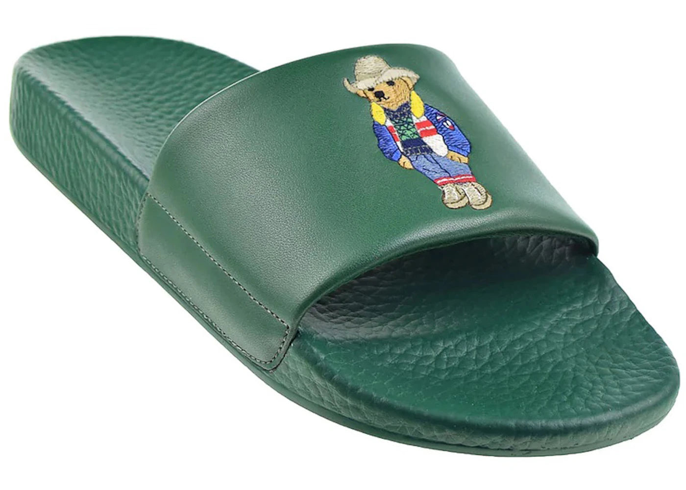 The Polo Ralph Lauren Cowboy Polo Bear Slide Forest Green is now available at Side Kicks!