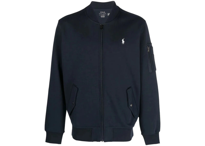 Polo Ralph Lauren Long Sleeve Double Knit Tech Full Zip Bomber Jacket Aviator Navy