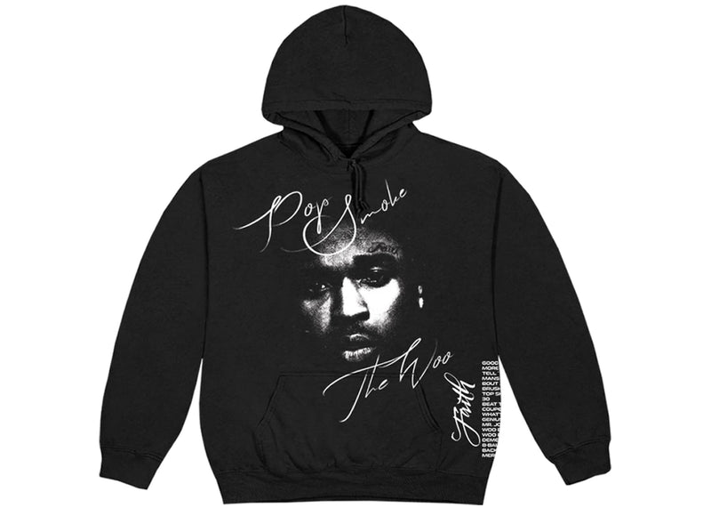 The Pop Smoke x Vlone Faith Hoodie Black is now available at Side Kicks!