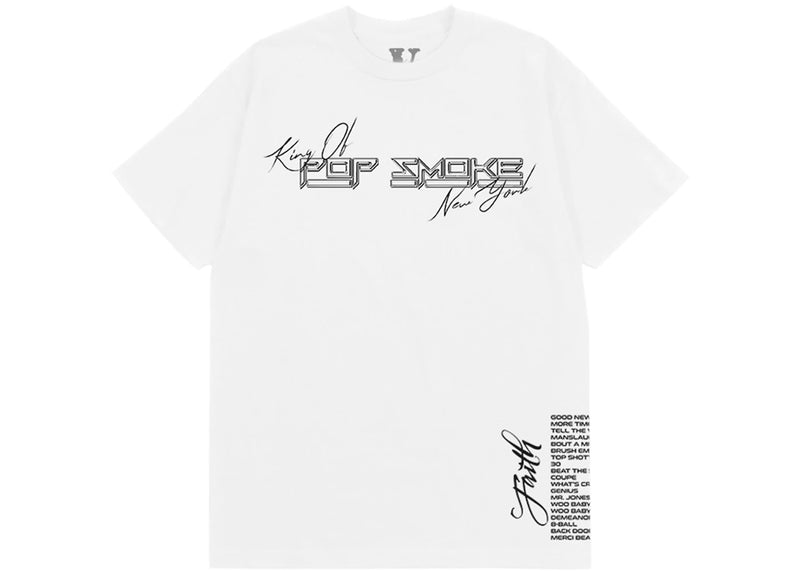 The Pop Smoke x Vlone Faith King of New York T-shirt White is now available at Side Kicks!