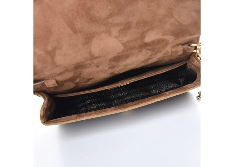Prada Cahier Belt Bag Logo Print Velvet Cammello