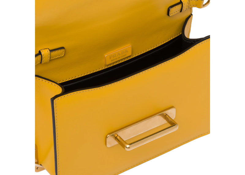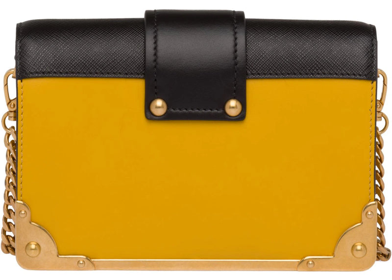 The Prada Cahier Chain Yellow is now available at Side Kicks!