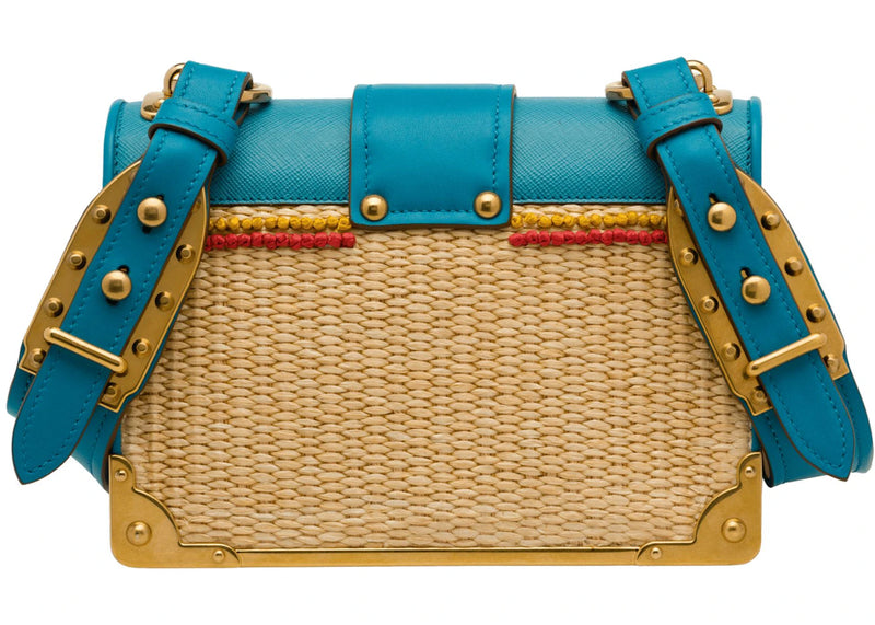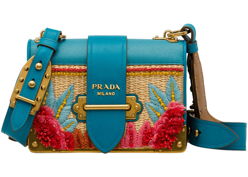 The Prada Cahier Floral Straw Blue is now available at Side Kicks!