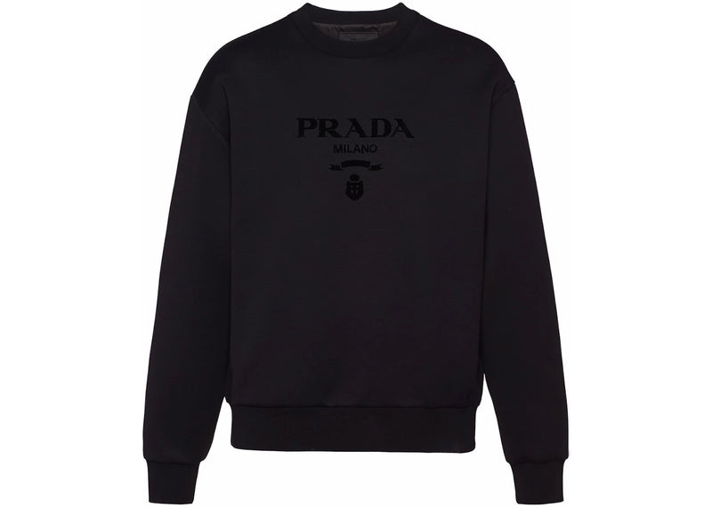 The Prada Chenille Logo Crewneck Sweatshirt Black is now available at Side Kicks!