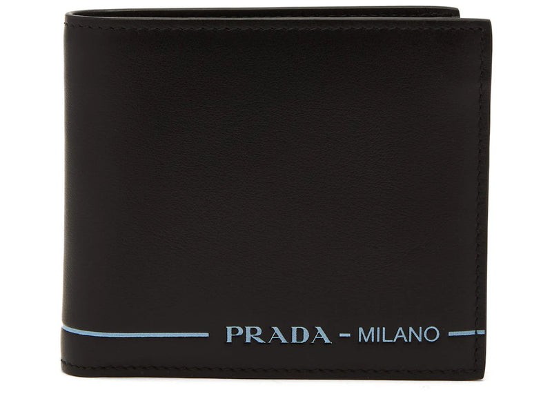 The Prada City Sport Bifold Wallet Black/Light Blue is now available at Side Kicks!