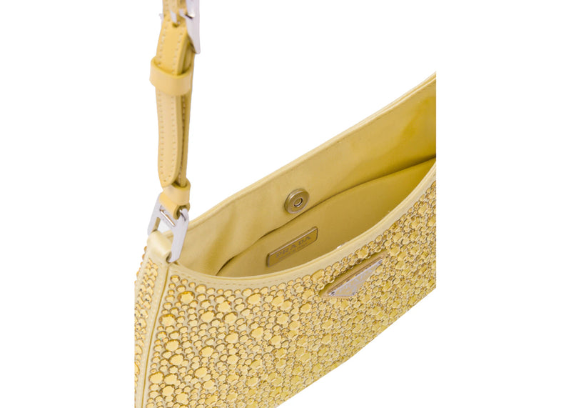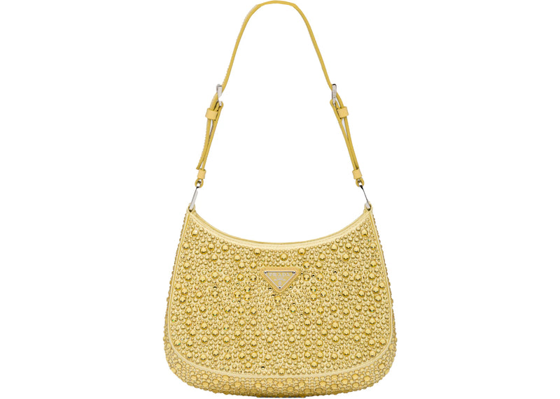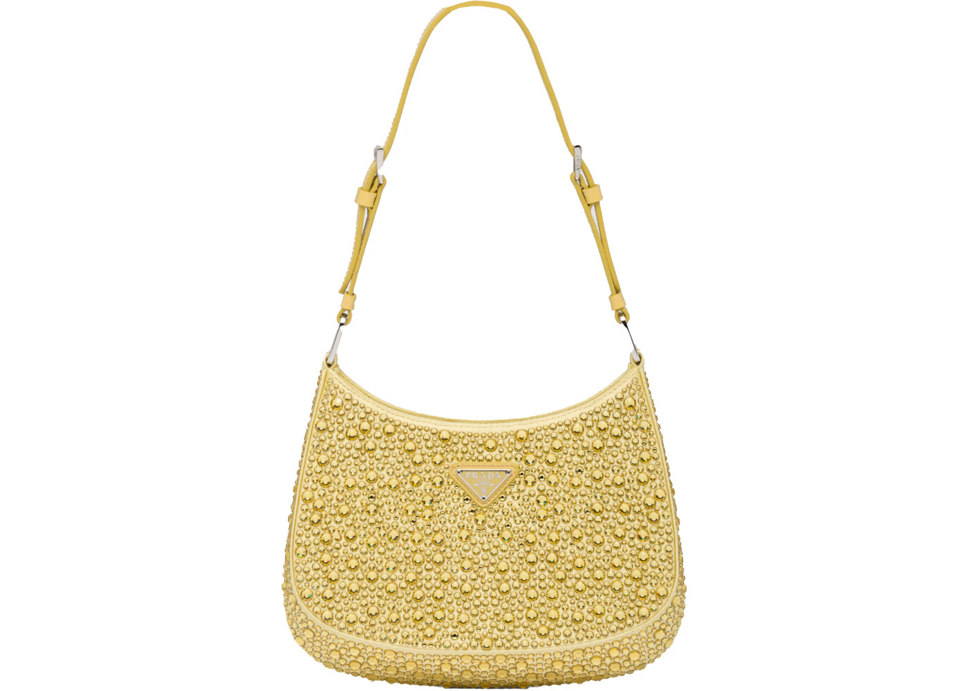 The Prada Cleo Satin Bag With Appliques Pineapple Yellow is now available at Side Kicks!