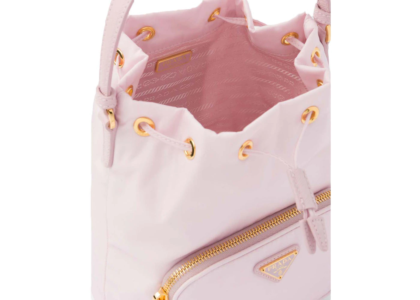 Prada Duet Re-Nylon Bucket Shoulder Bag Alabaster Pink