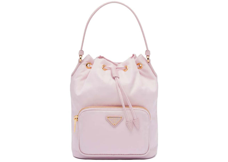 The Prada Duet Re-Nylon Bucket Shoulder Bag Alabaster Pink is now available at Side Kicks!