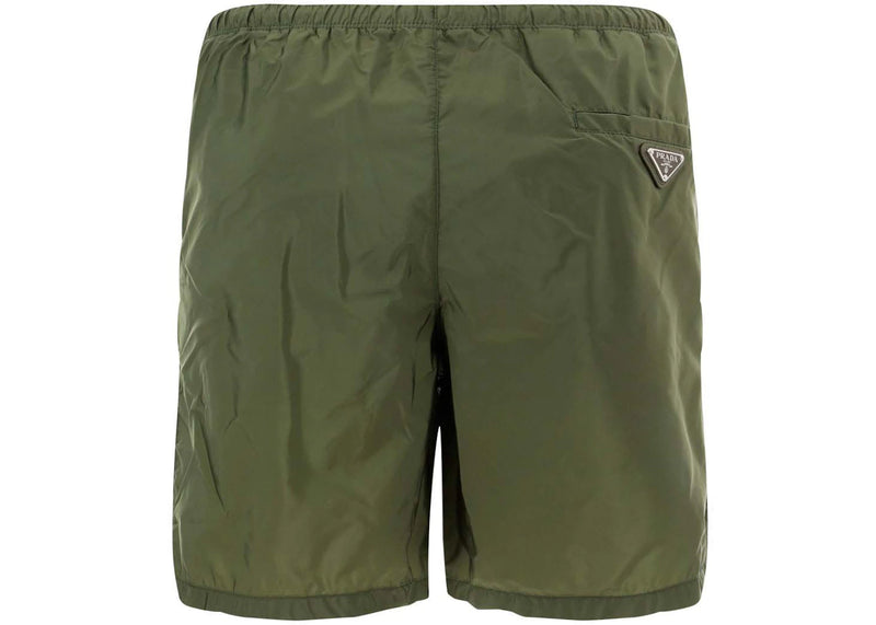 The Prada Elastic Swim Shorts Militare is now available at Side Kicks!