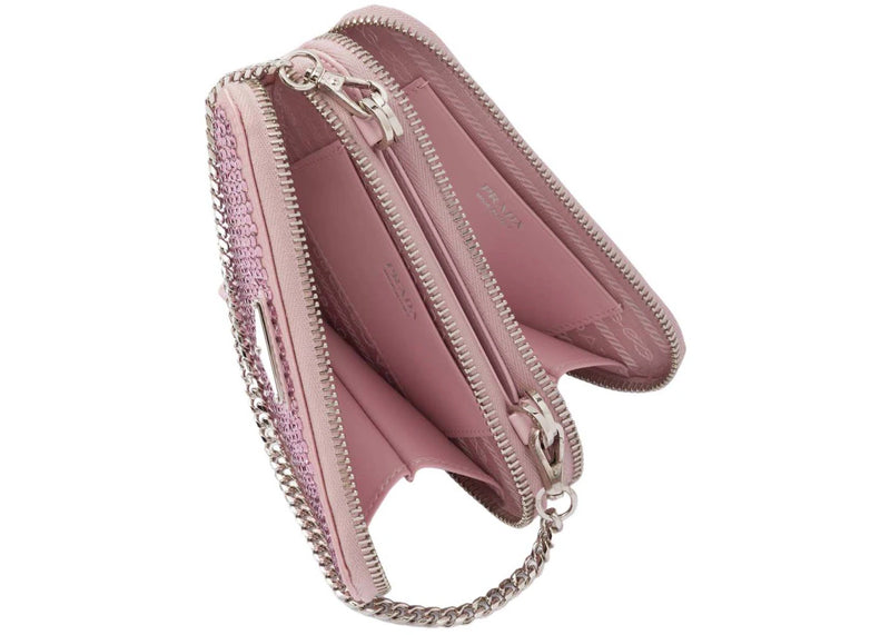 Prada Embellished Satin and Leather Mini Pouch Alabaster Pink