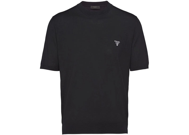 The Prada Embroidered Logo Wool Short Sleeved Shirt Black is now available at Side Kicks!