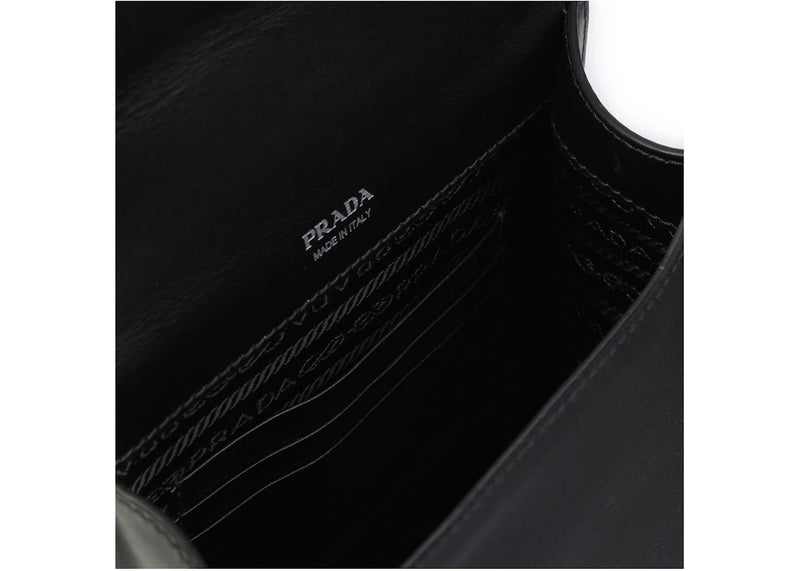 The Prada Flap Lock Details Shoulder Bag Black is now available at Side Kicks!