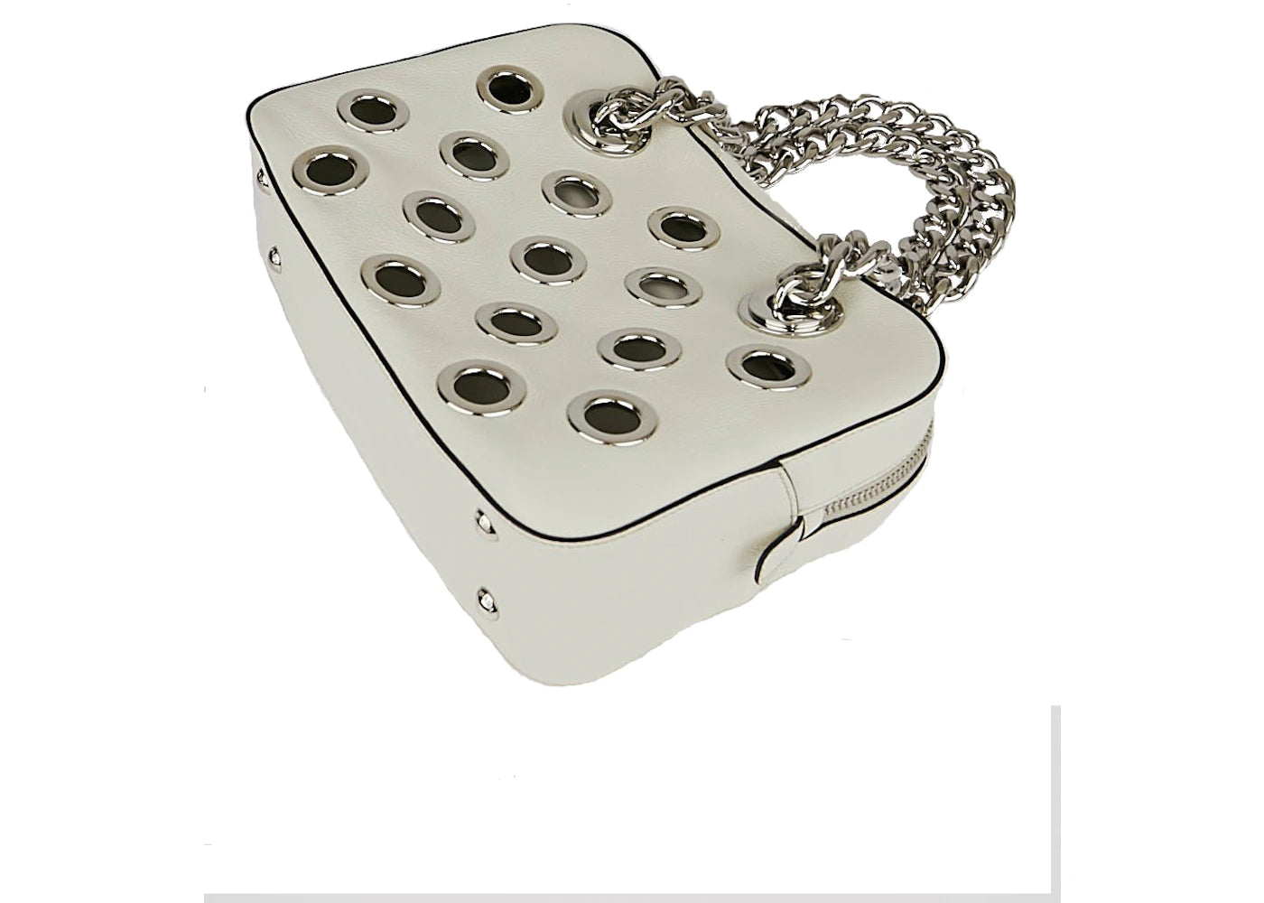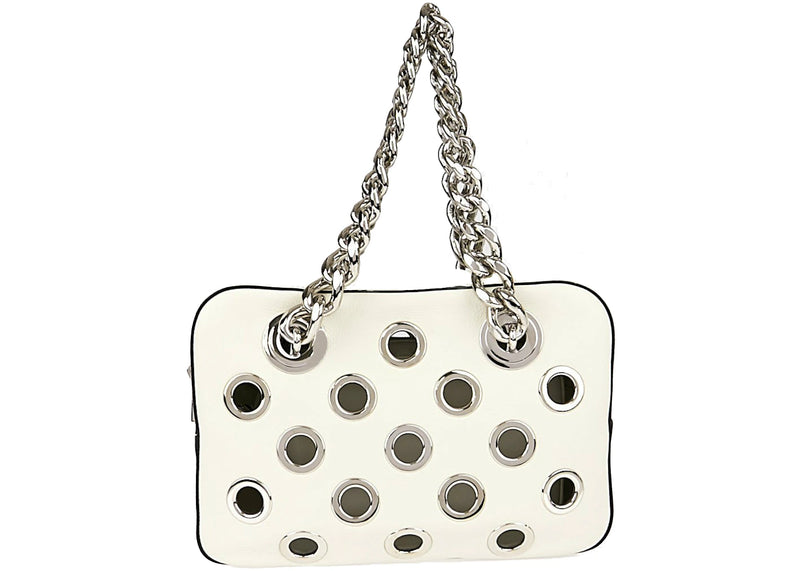 The Prada Grommet Shoulder Bag Vitello Daino White is now available at Side Kicks!