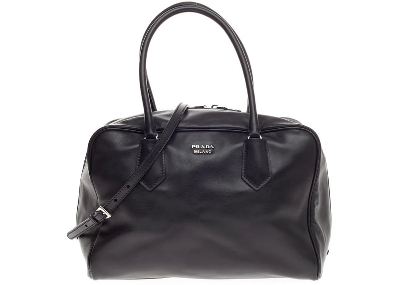 The Prada Inside Bauletto Satchel Medium Nero Black is now available at Side Kicks!