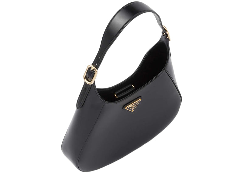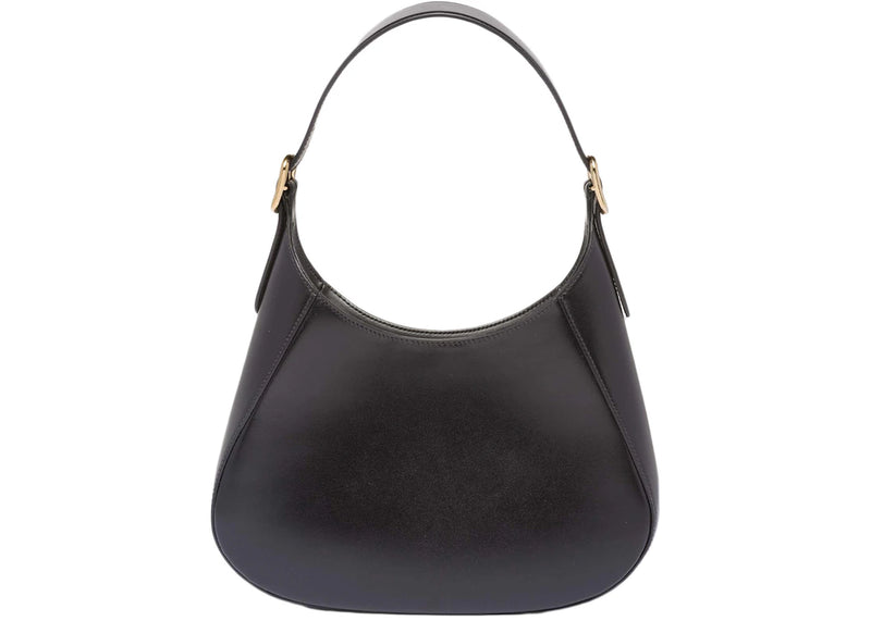 The Prada Logo Leather Shoulder Bag Black/Gold is now available at Side Kicks!