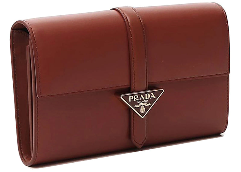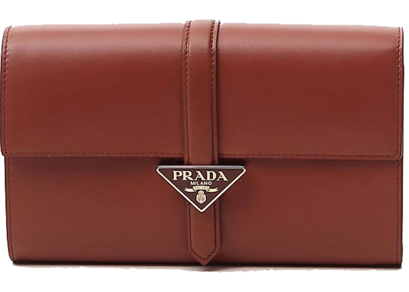 The Prada Logo Plaque Pouch Wallet Brown is now available at Side Kicks!