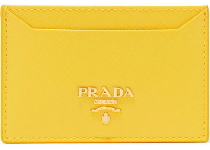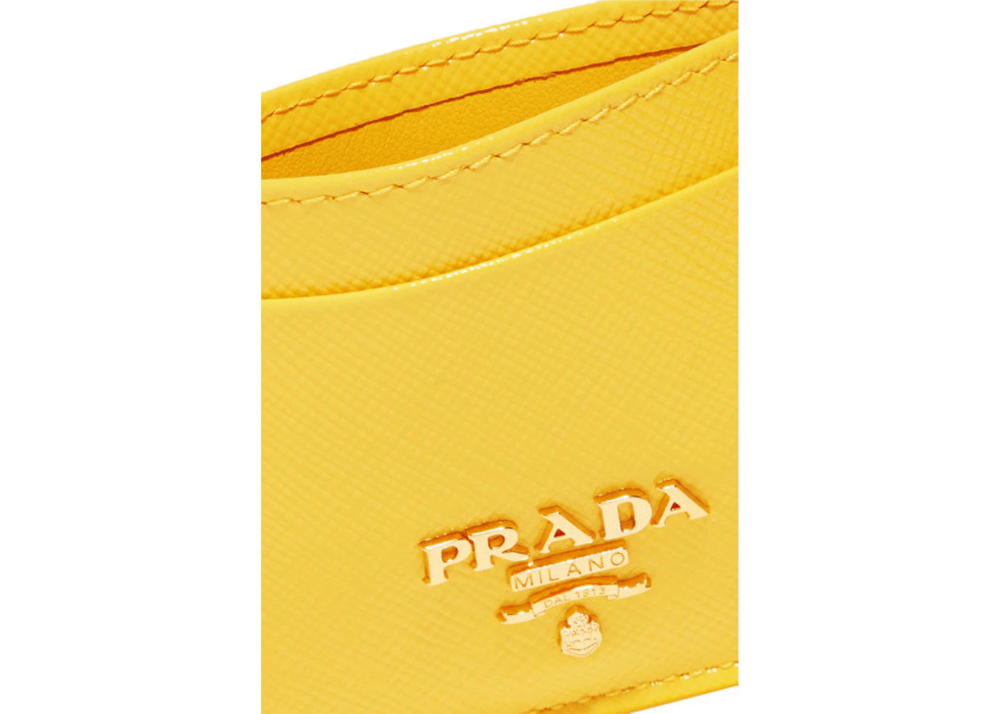 The Prada Metal Oro Card Case Saffiano Yellow is now available at Side Kicks!