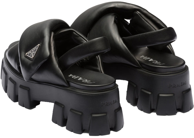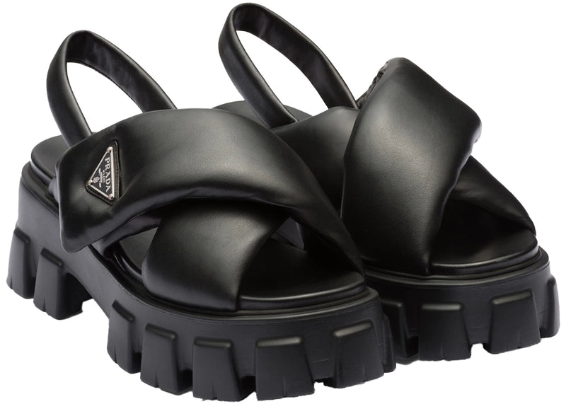 Prada Monolith Padded 55mm Sandals Black Nappa Leather