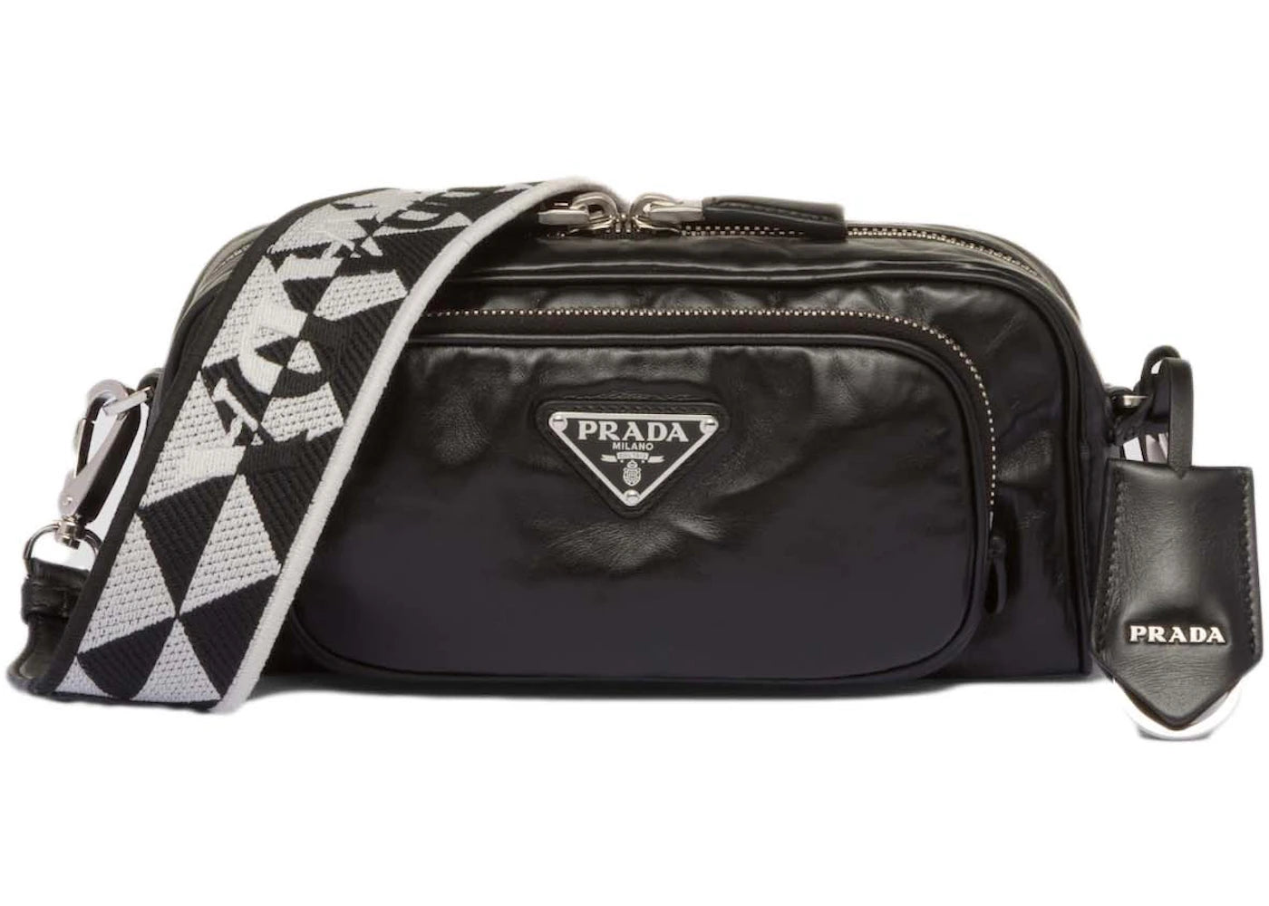 The Prada Nappa Antique Leather Multi-Pocket Shoulder Bag Black is now available at Side Kicks!