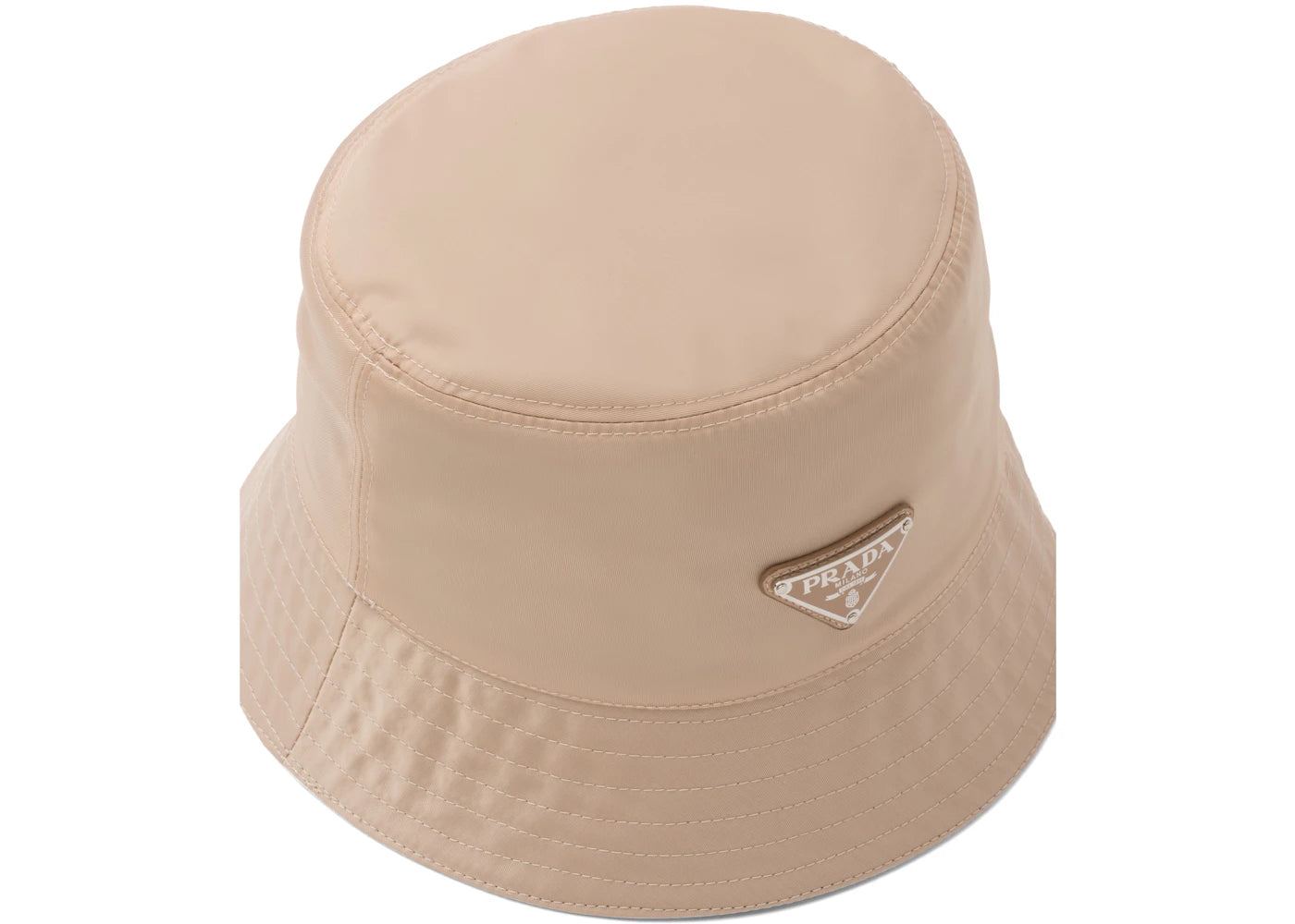 The Prada Nylon Bucket Hat Cameo Beige is now available at Side Kicks!