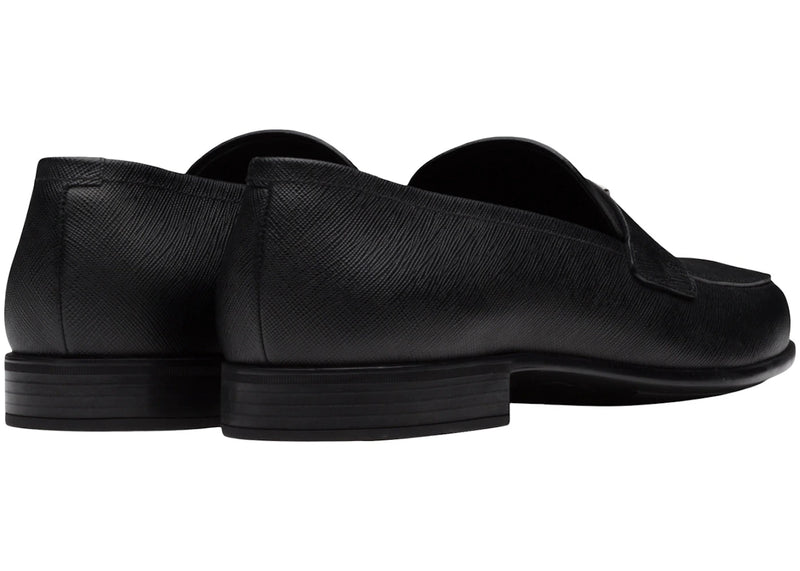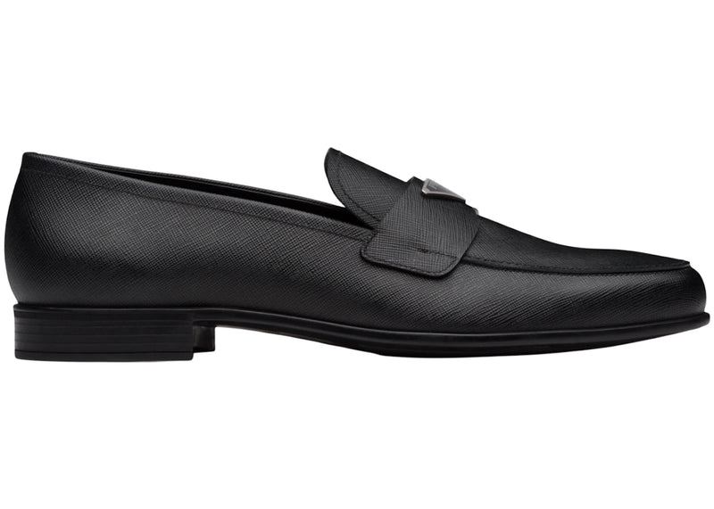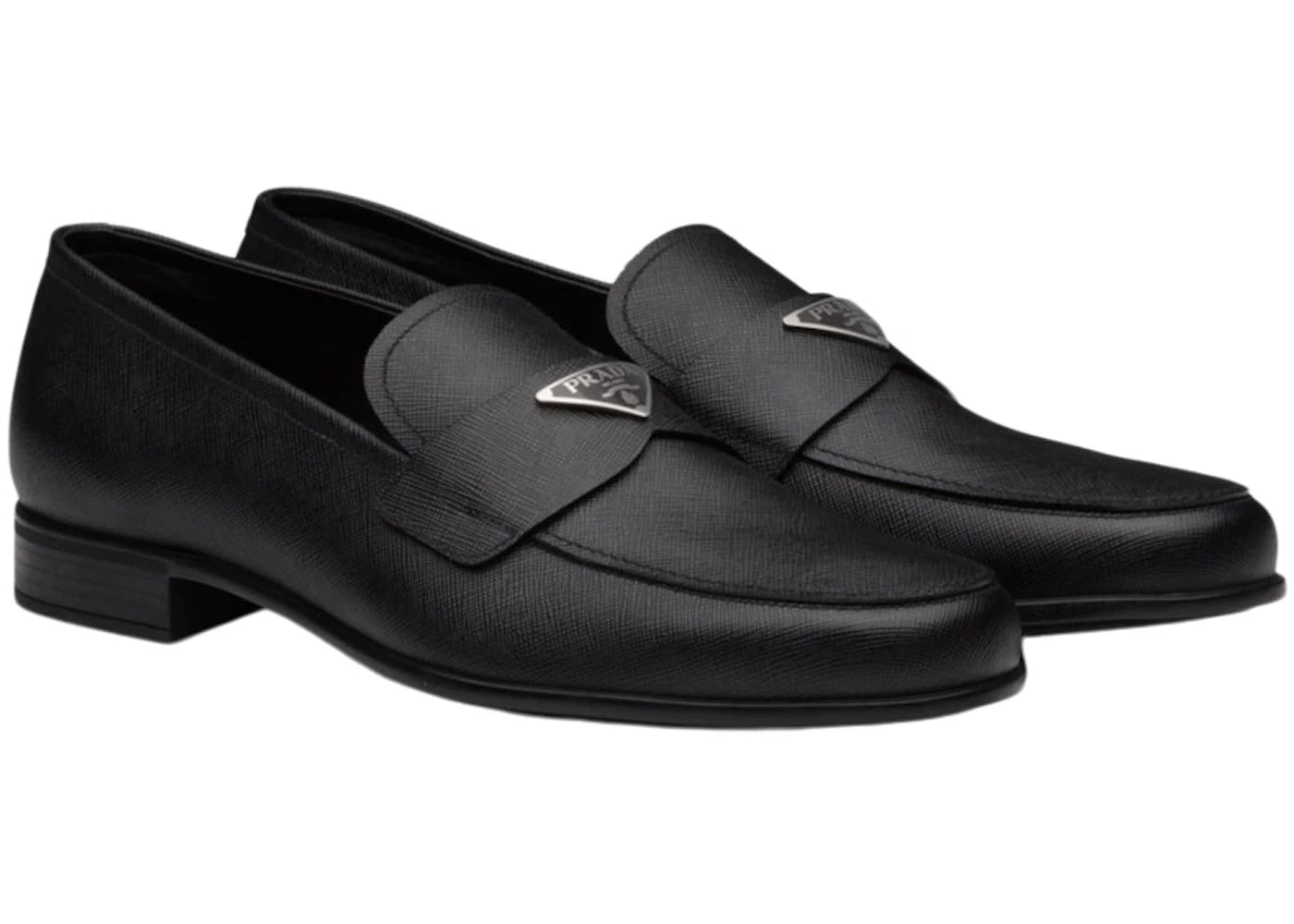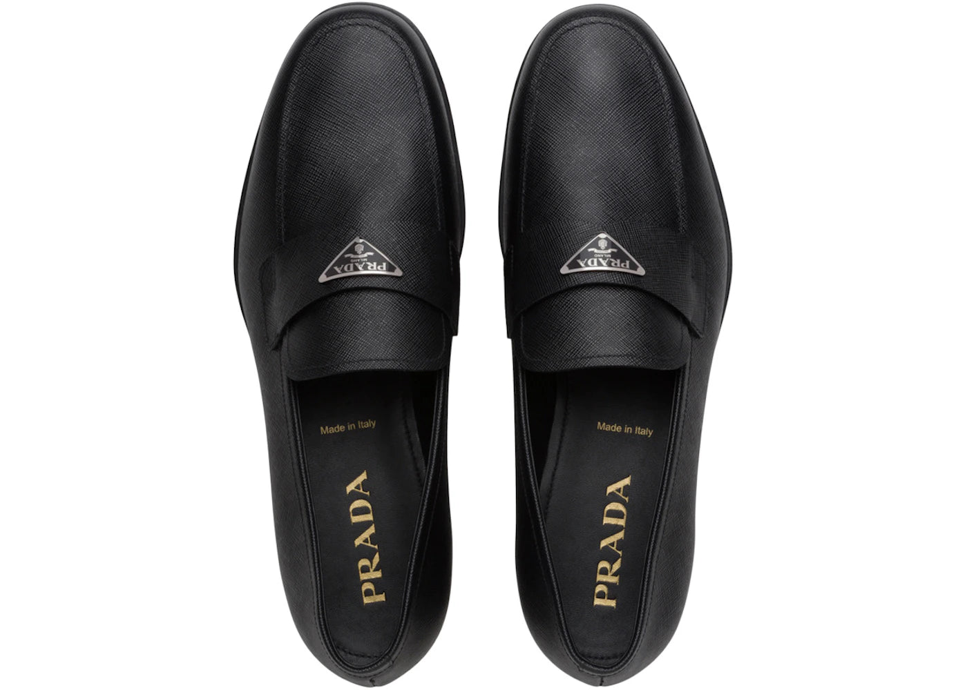 The Prada Plaque Loafer Black Saffino Leather is now available at Side Kicks!