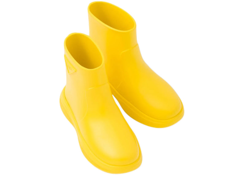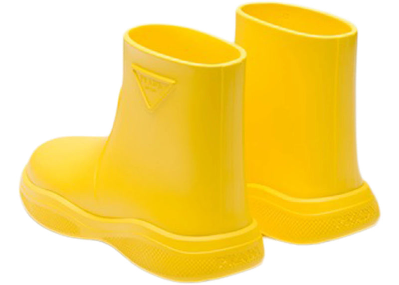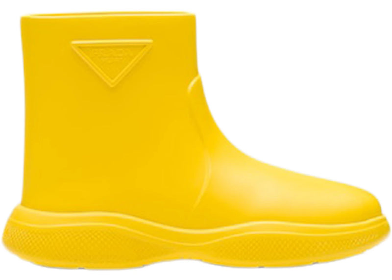 The Prada Pull-On Rain Booties Sunny Yellow Rubber is now available at Side Kicks!