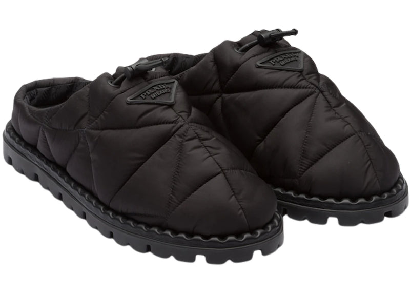 The Prada Quilted Slides Black Nylon is now available at Side Kicks!