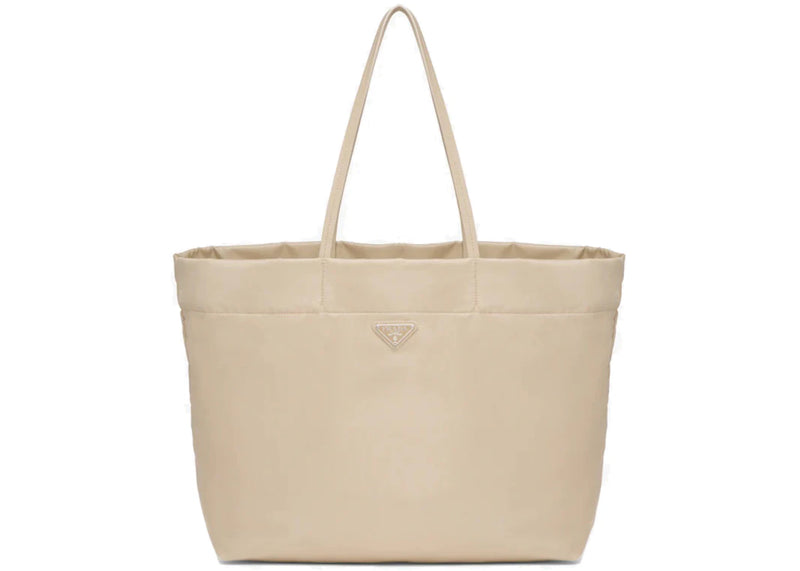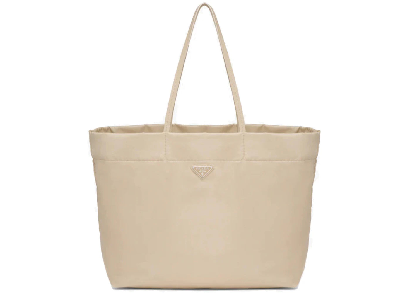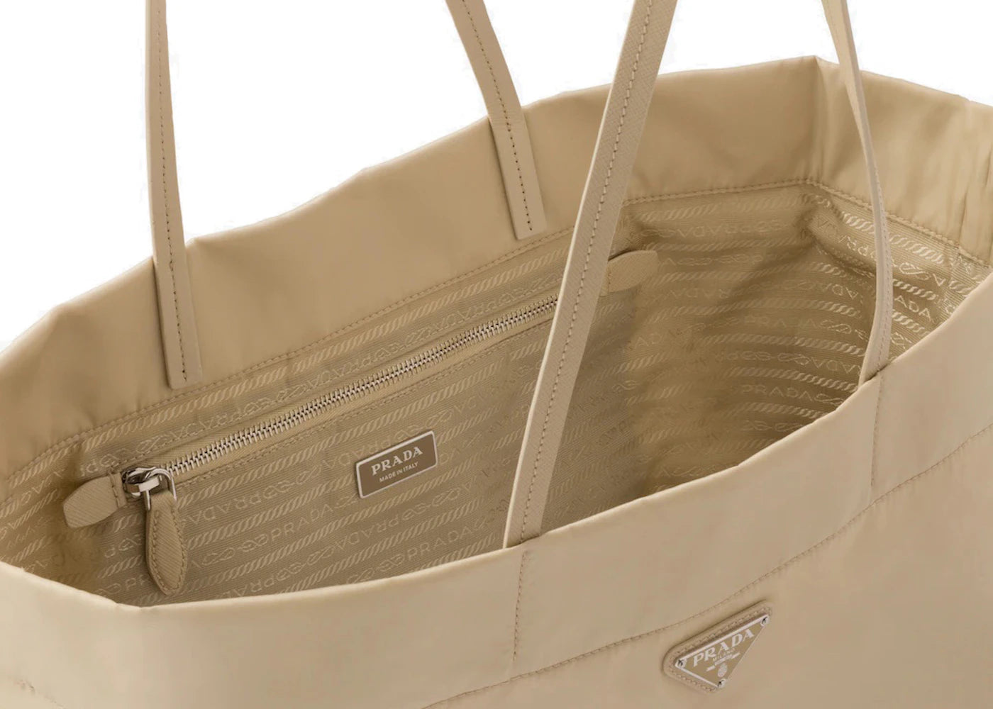 The Prada Re-Nylon and Saffiano Leather Tote Bag Desert Beige is now available at Side Kicks!