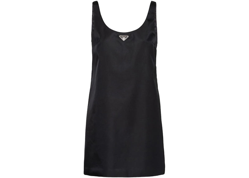 The Prada Re-Nylon Logo Plaque Mini Dress Black is now available at Side Kicks!