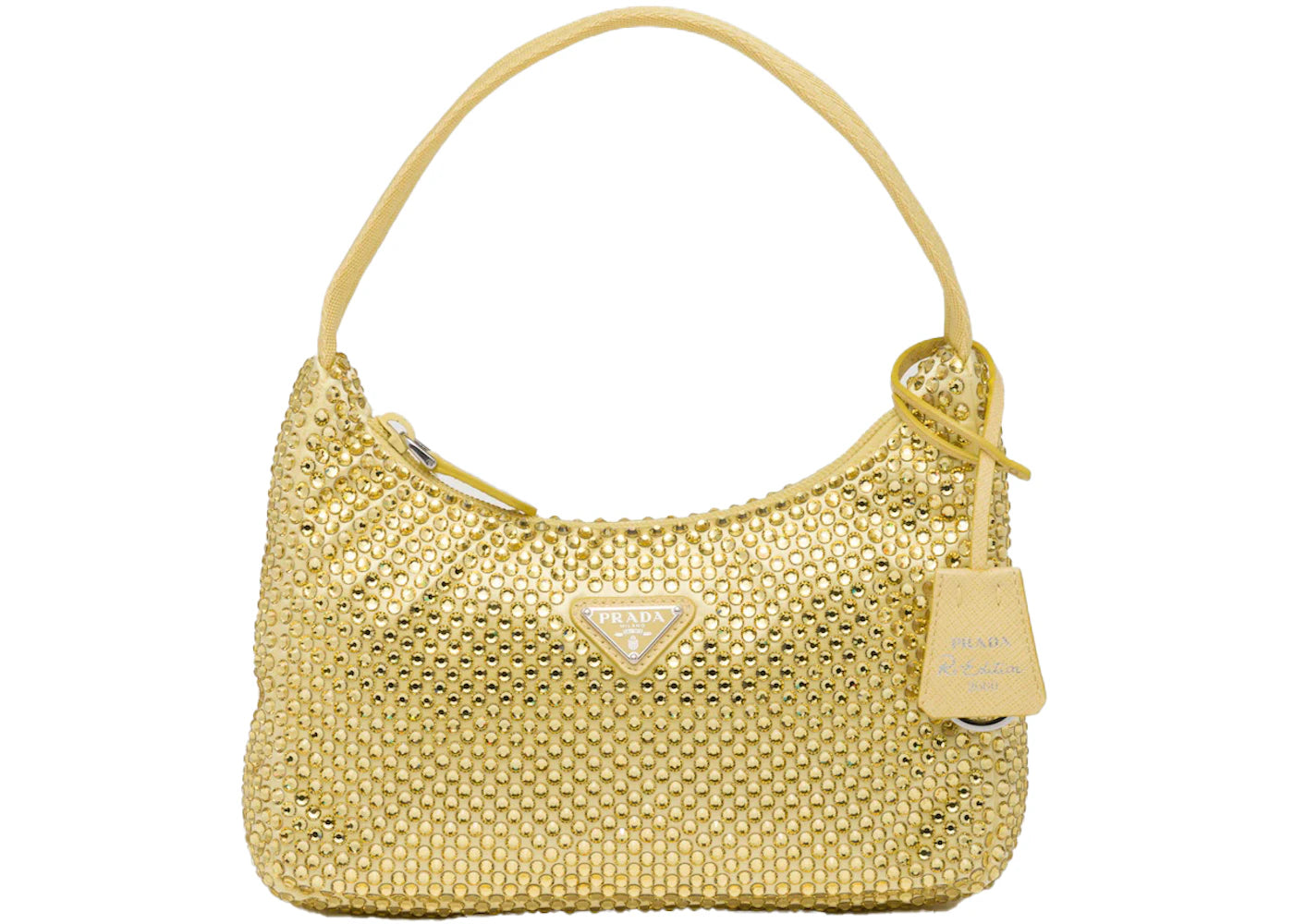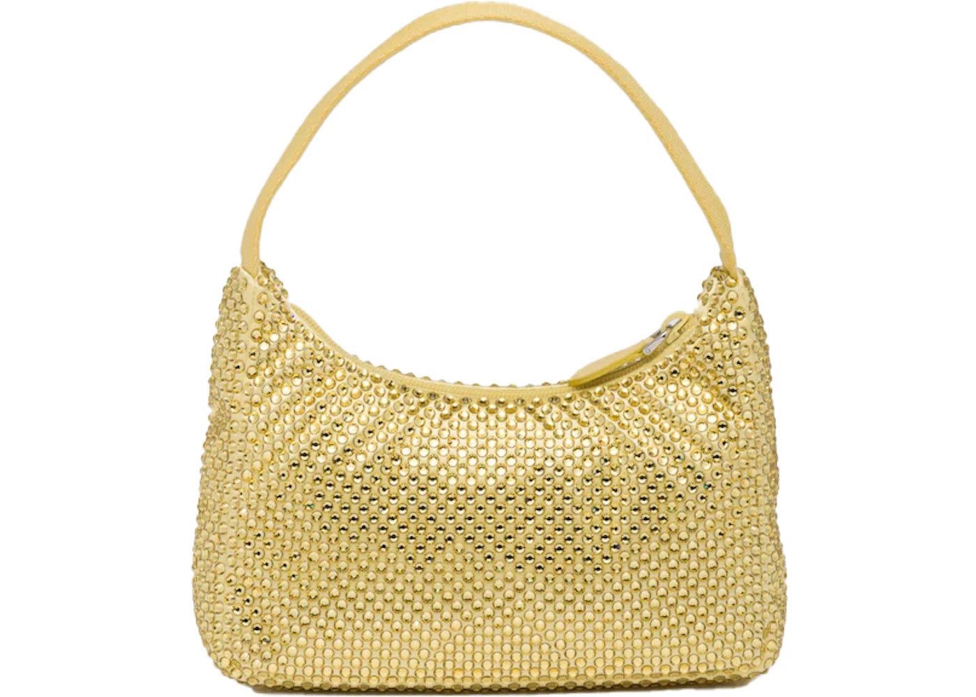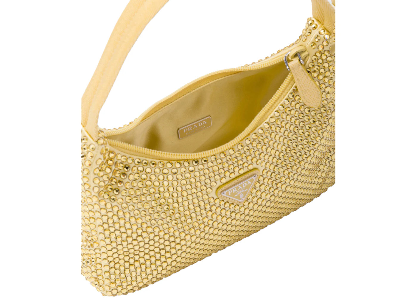 The Prada Satin Mini-Bag With Artificial Crystals Pineapple Yellow is now available at Side Kicks!