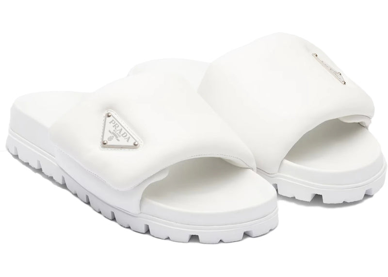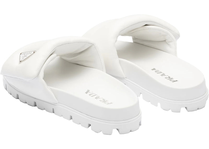 Prada Soft Padded 20mm Slide Sandal White Nappa Leather