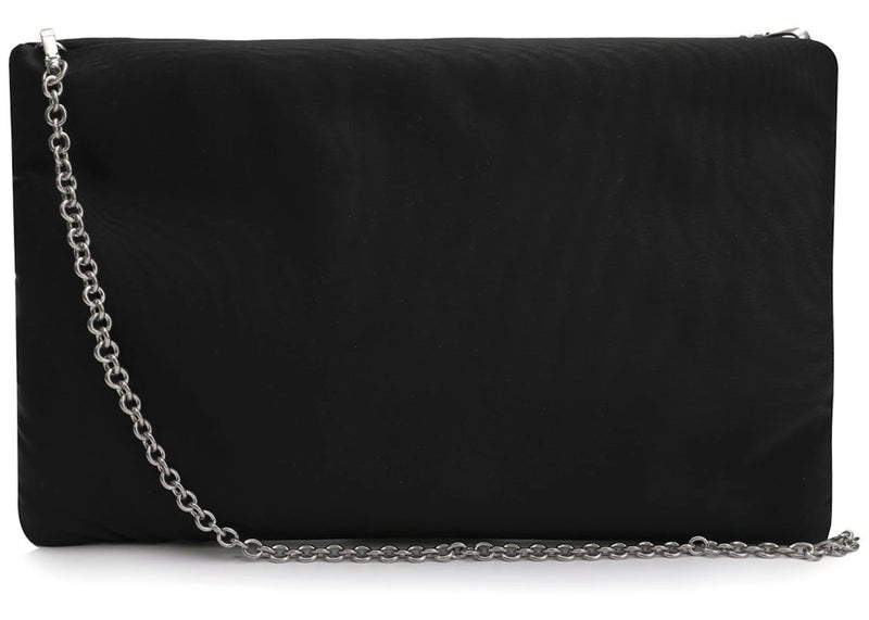 Prada Triangle-Logo On-Chain Clutch Bag Black