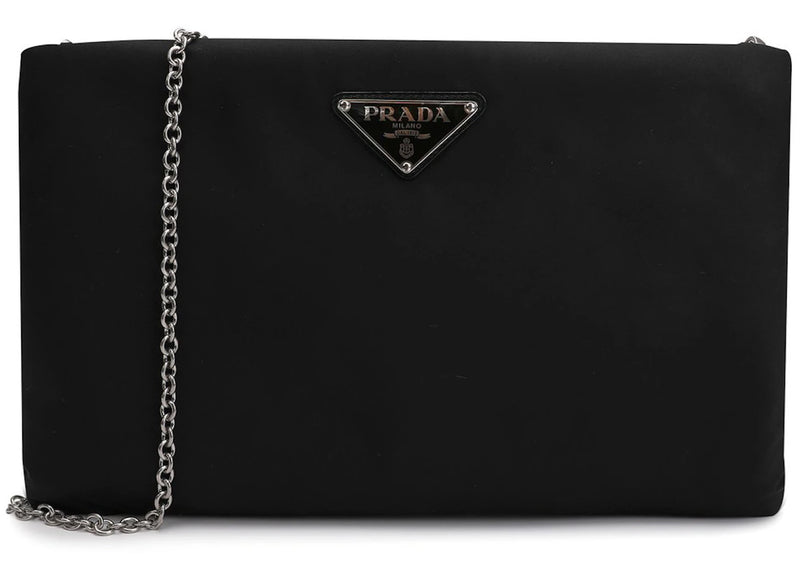 The Prada Triangle-Logo On-Chain Clutch Bag Black is now available at Side Kicks!